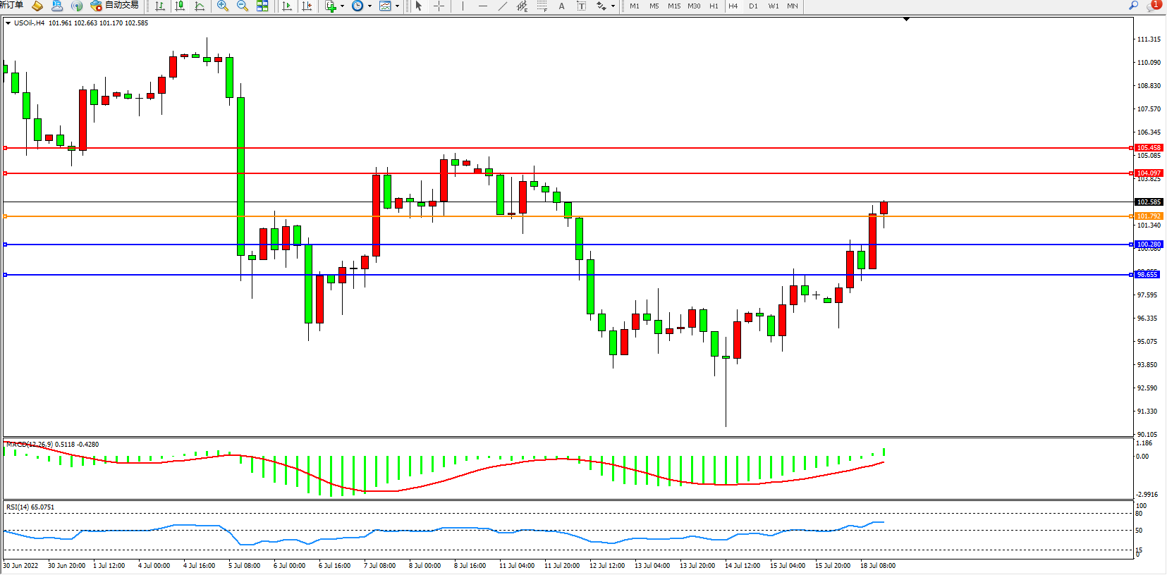 原油USOil——4小时K线图显示: