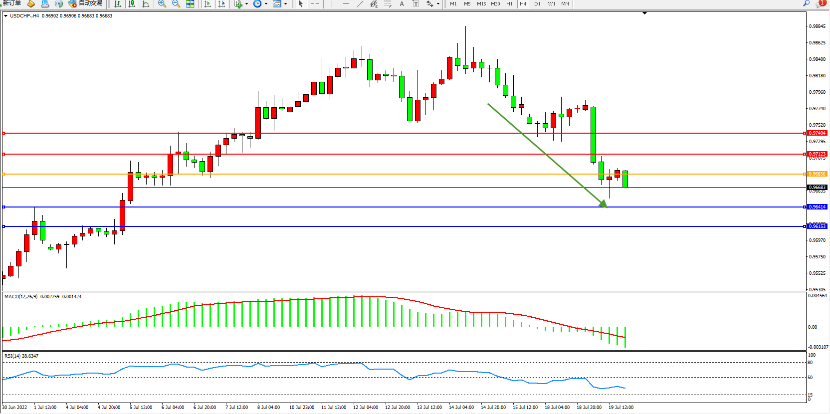 美元瑞郎USDCHF——4小时K线图显示: