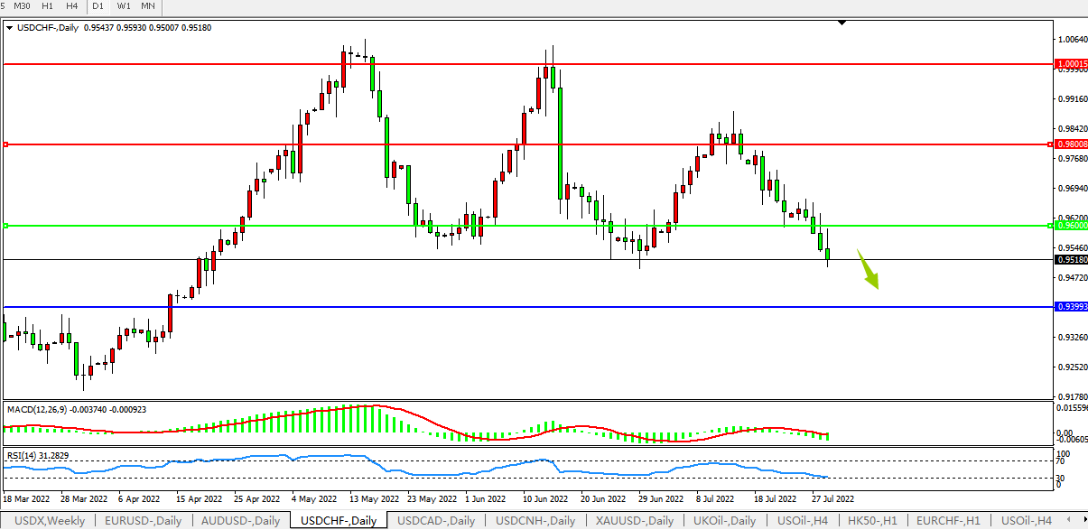 USDCHF:下行较为流畅
