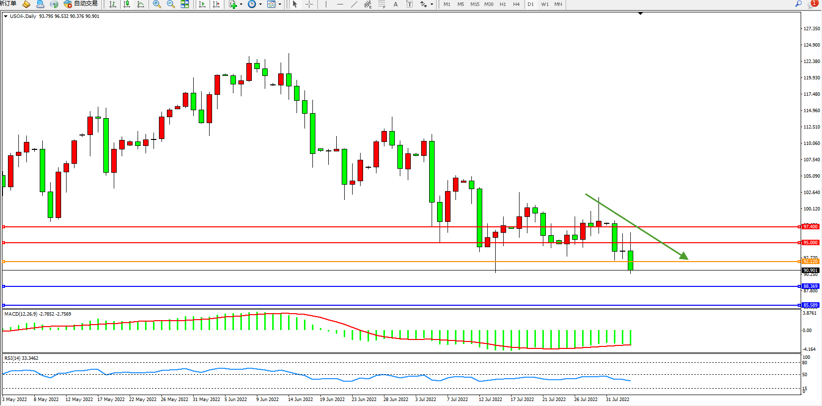 美油:低位空头弱势下行 USOil   UKOil