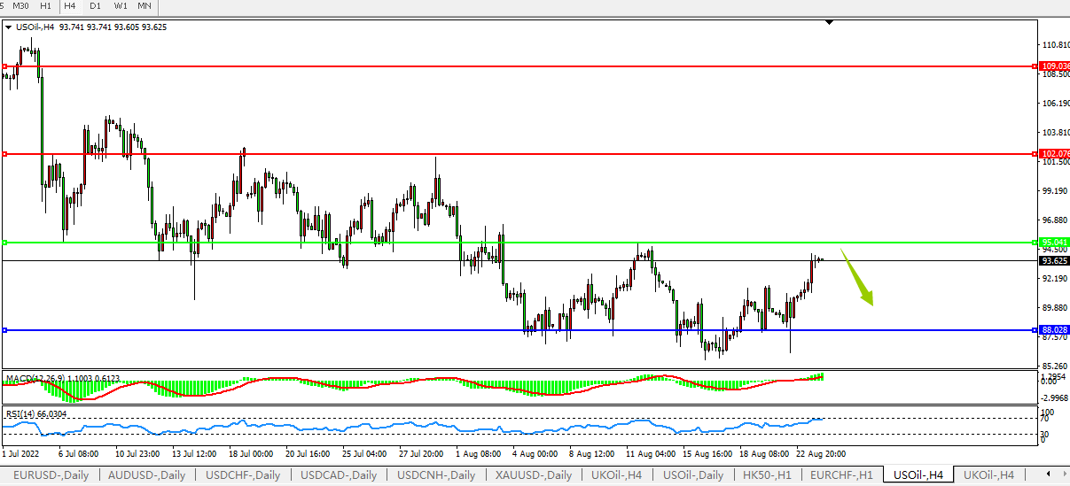 USOIL;关注95关口压制