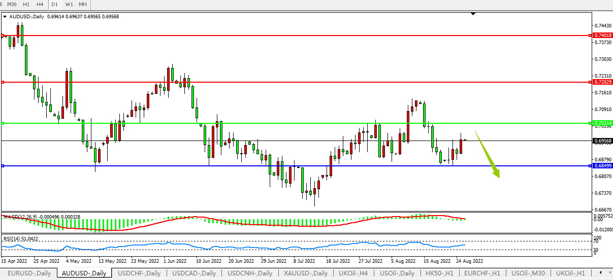 交易策略:0.7030下方看跌,目标0.6850、0.6700
