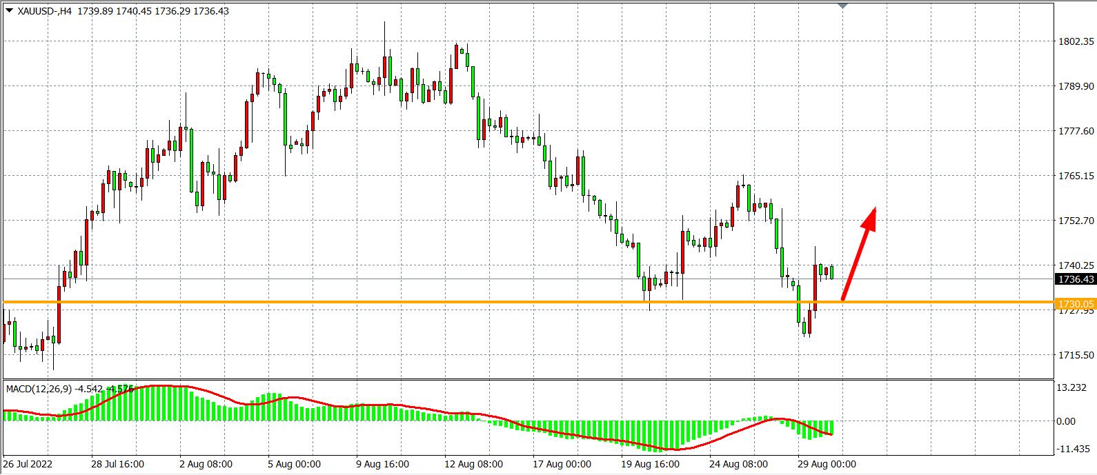 备选策略:在1730.00之下看跌,目标1720.00            1700.00