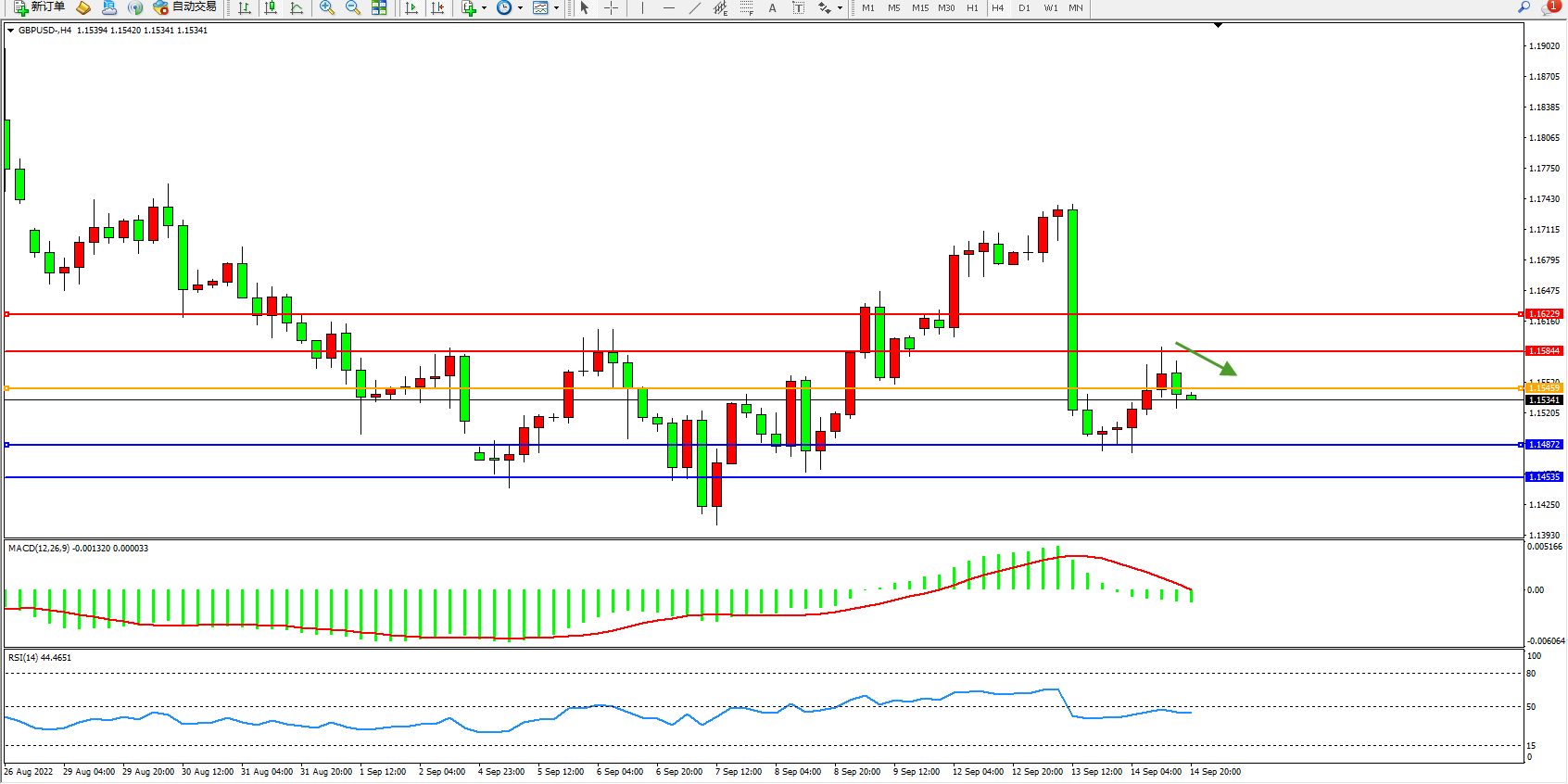 英镑美元GBPUSD ——4小时K线图显示: