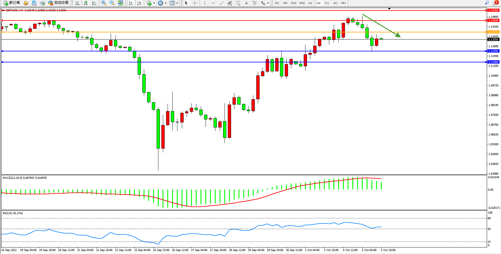 英镑美元GBPUSD ——4小时K线图显示: