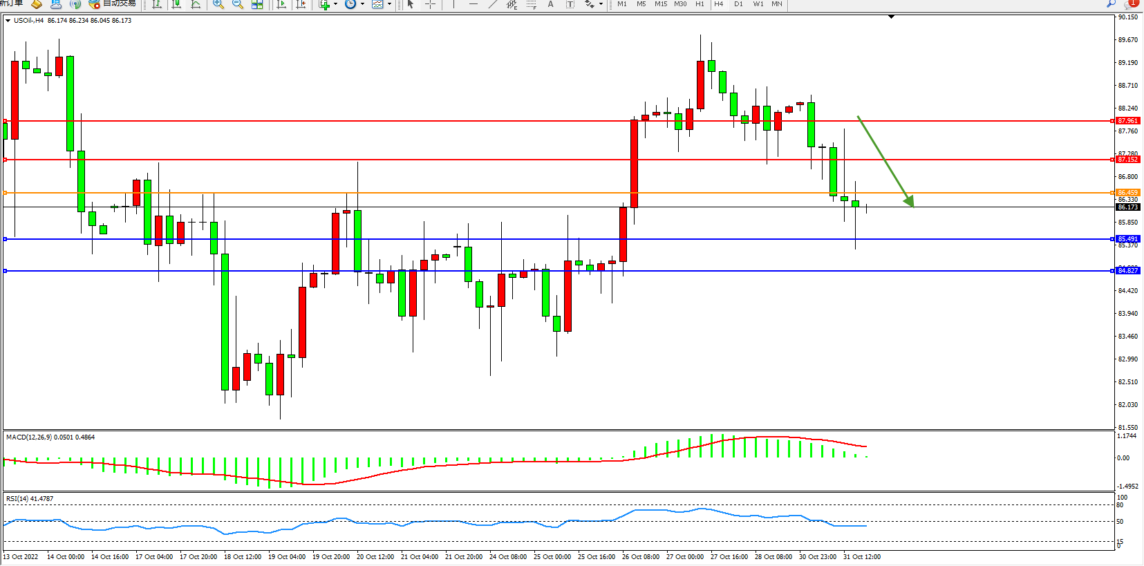 原油USOil——4小时K线图显示: