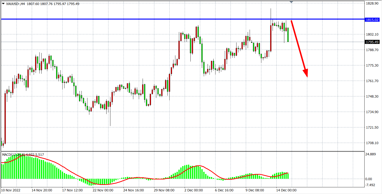 交易策略:在1815.00之下看跌,目标1780.00 1770.00