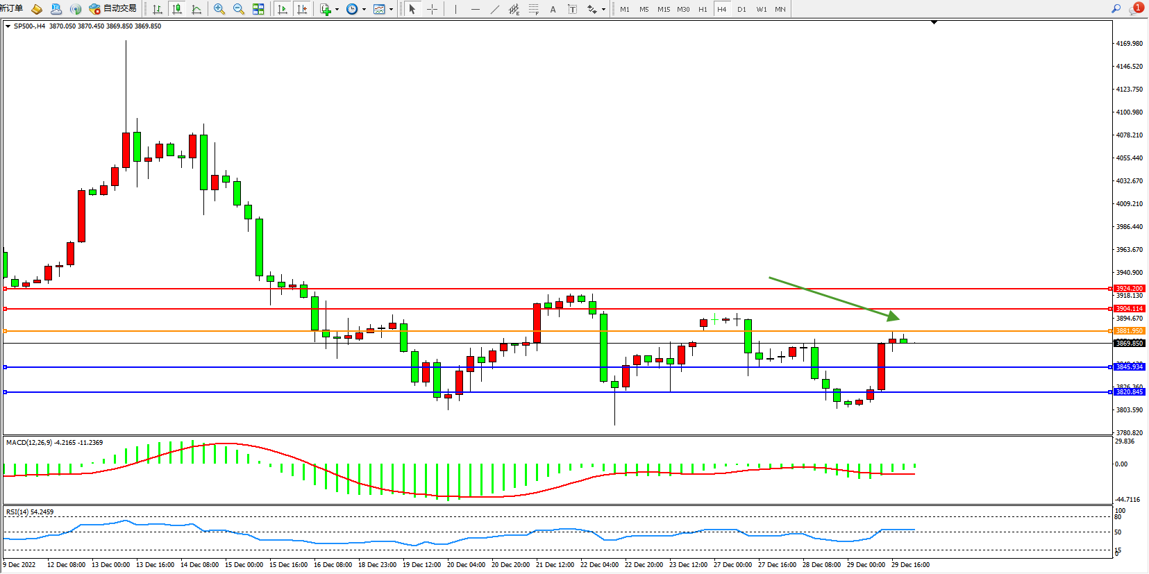 标普SP500——4小时K线图显示: