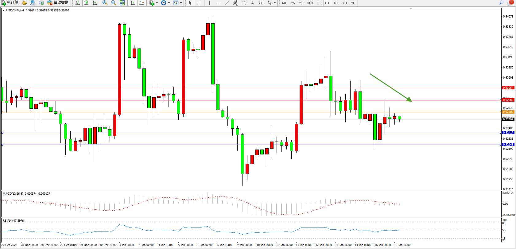 美元兑瑞郎维持0.92607附近震荡,美元指数在跌创去年6月上旬以来新低至101.767后反弹转升,重回102关口上方。但瑞郎继续受到美联储加息步伐放缓预期支撑,美联储最终加息终点可能没有预测得那么高。