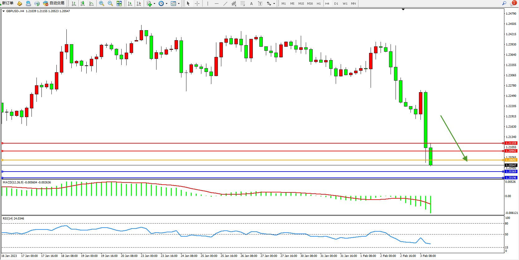 英镑美元GBPUSD ——4小时K线图显示: