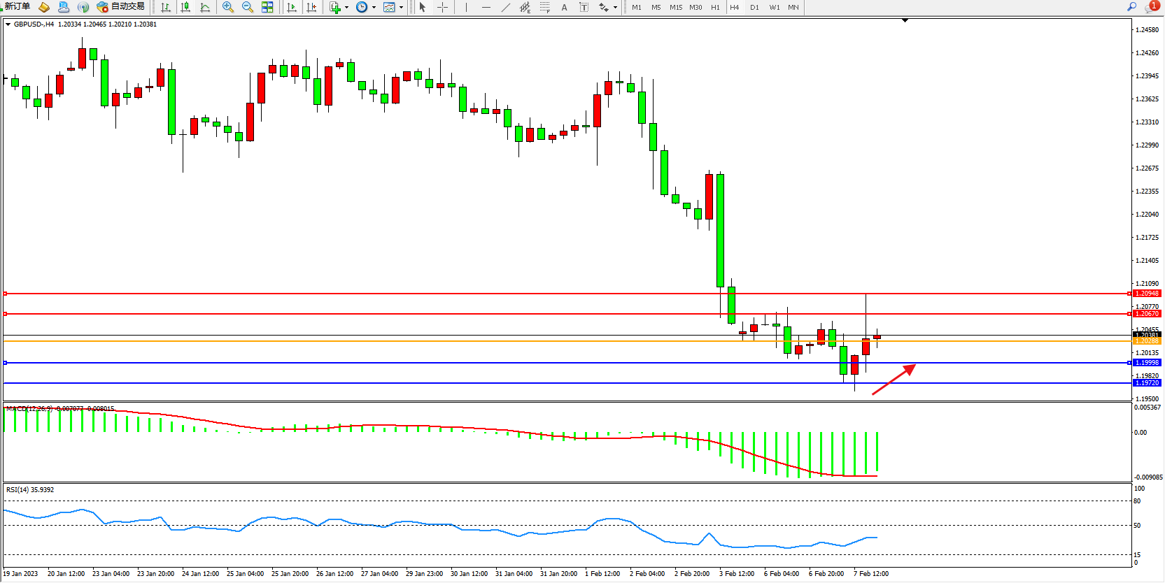英镑美元GBPUSD ——4小时K线图显示:
