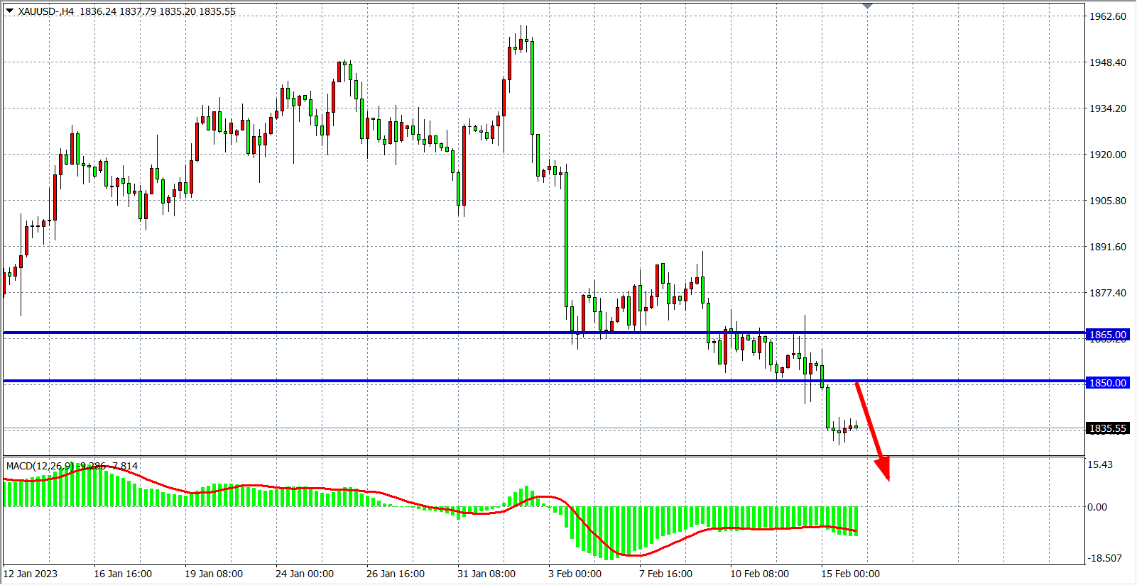 交易策略:在1850.00 之下看跌,目标1830.00         1820.00