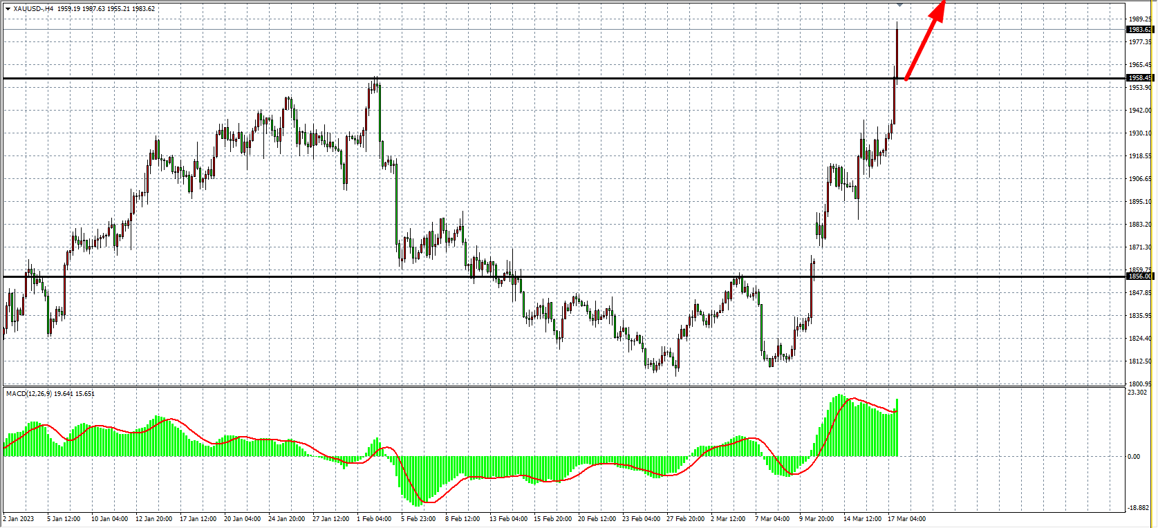 周五(3月17日)欧美银行业危机提振了避险买盘需求,对美联储加息预期大幅减弱,双重利好推动金价持续走强,现货黄金日内涨超60美元,突破1980美元,创下自2020年3月23日以来的最大单日涨幅。近期,美国硅谷银行、签名银行等银行相继暴雷,普遍被认为是美联储持续激进加息所致,使得市场对美联储加息预期大幅减弱,市场聚焦本周四美联储利率决议。