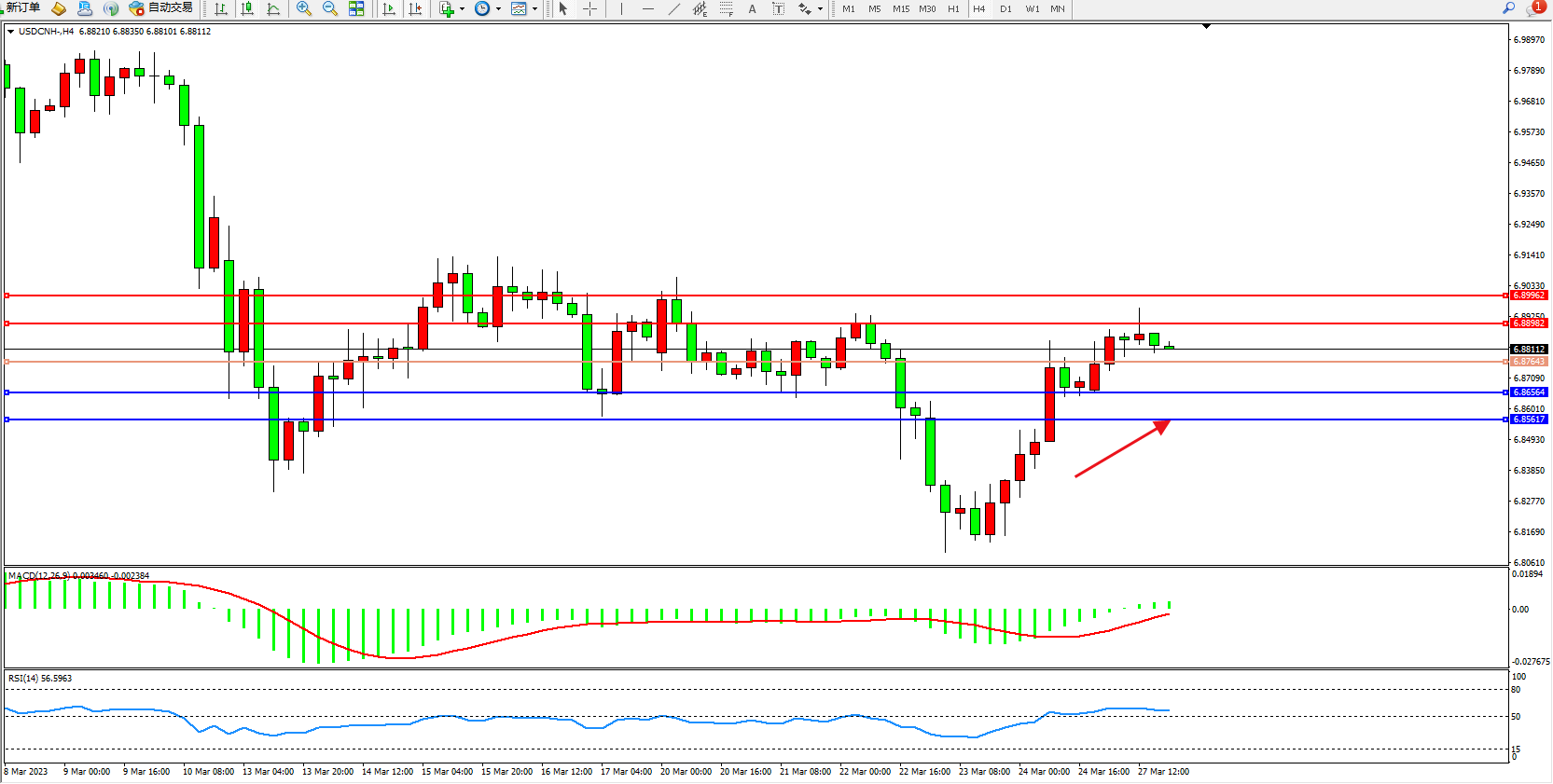 交易策略:6.87643上方看涨,目标6.88982 6.89962