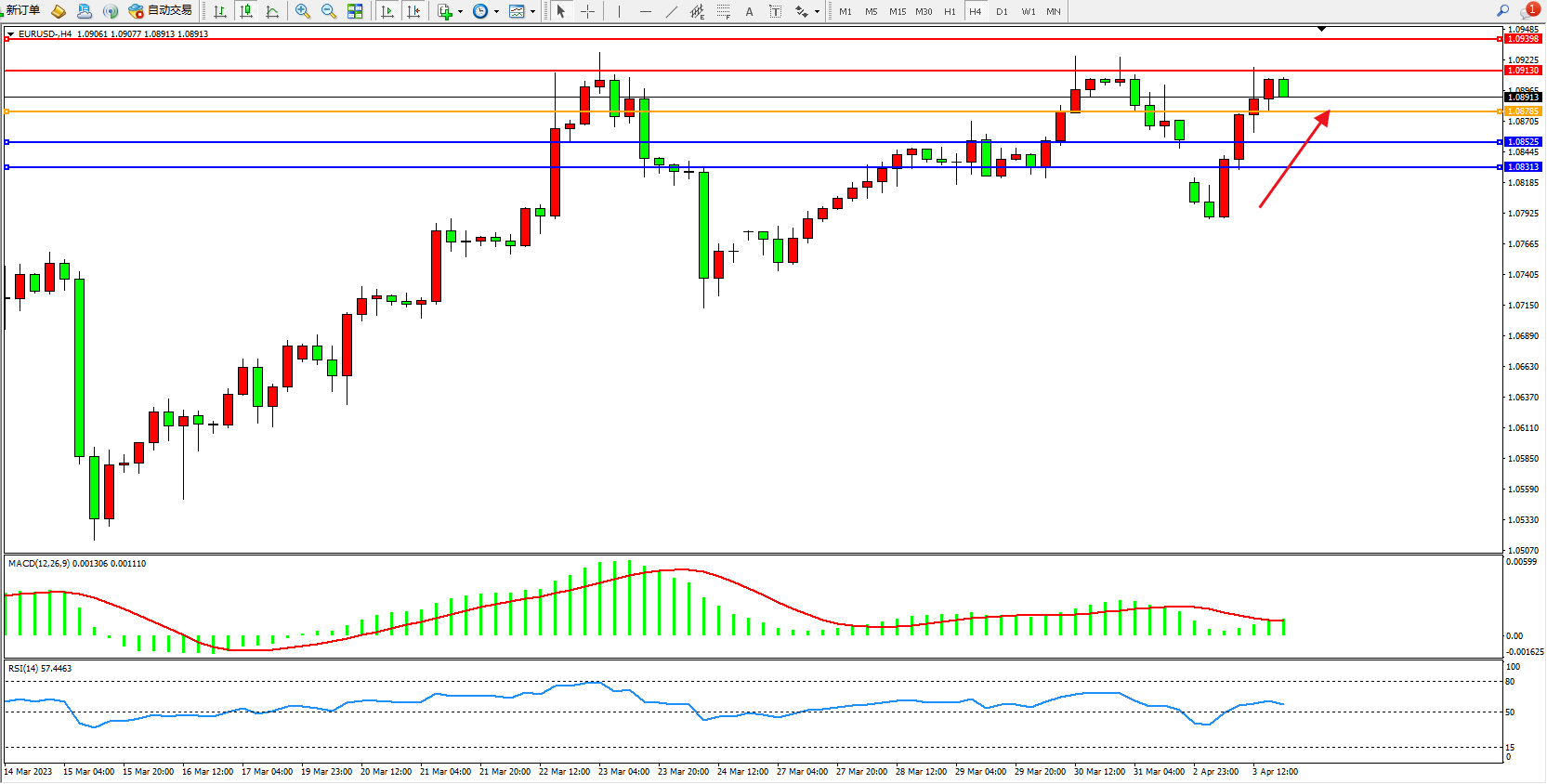 交易策略:1.08785上方看涨,目标1.09130  1.09398
