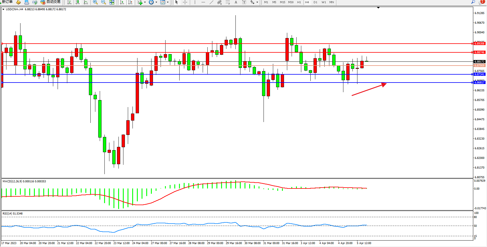 阻力位:6.88746 6.89308
