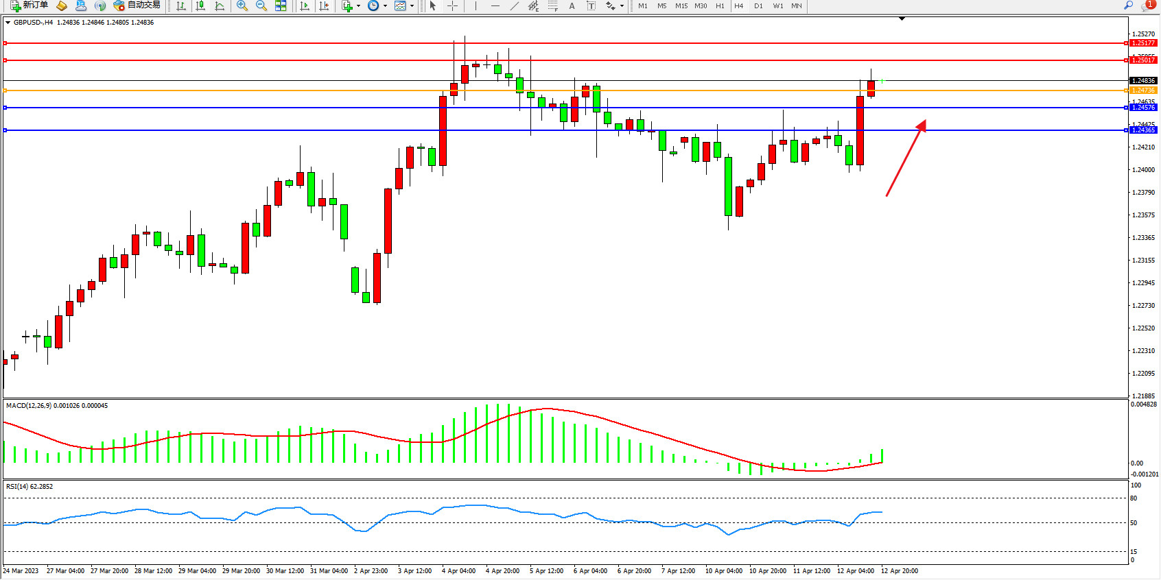 英镑美元GBPUSD ——4小时K线图显示: