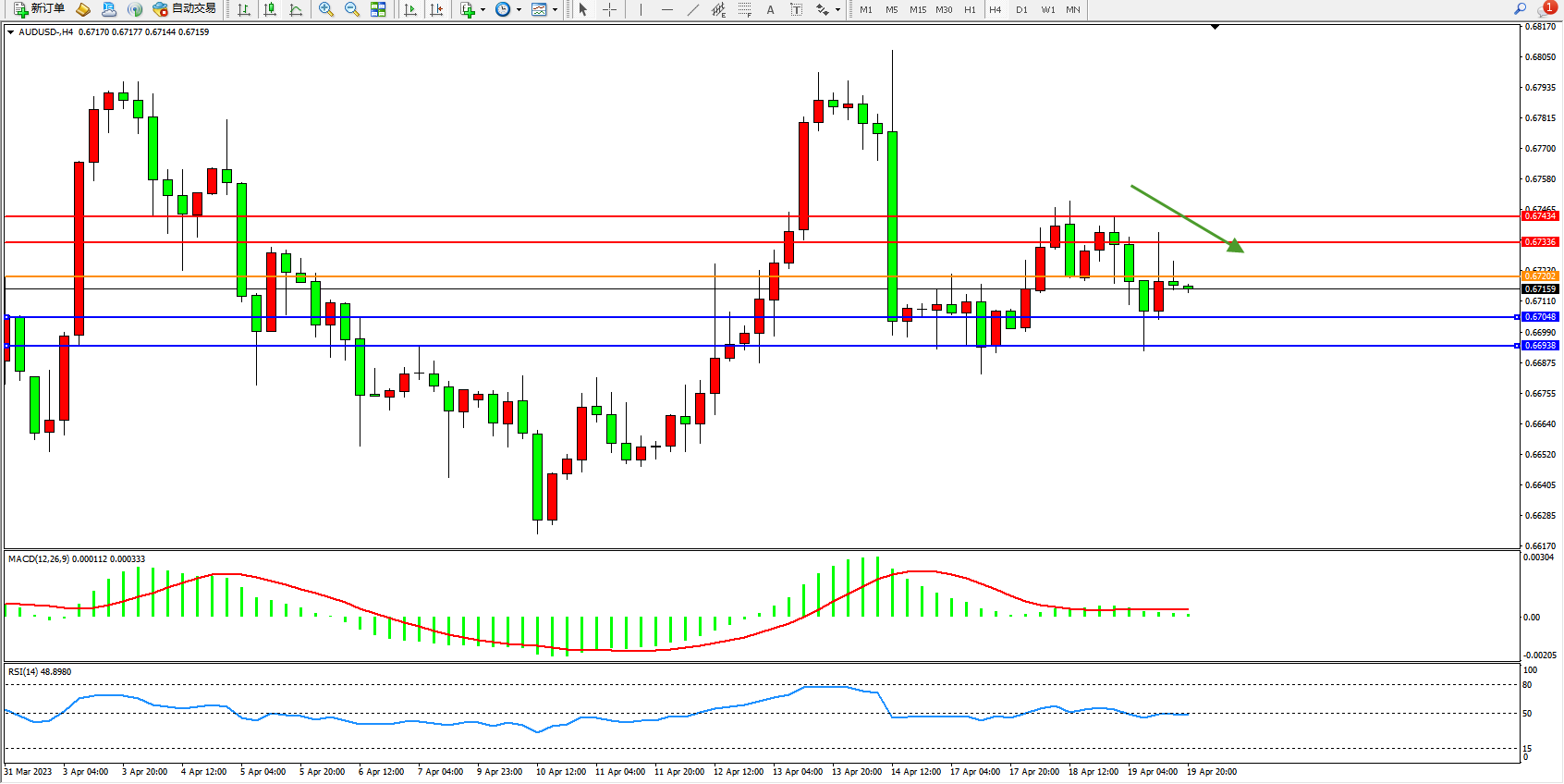交易策略:0.67202下方看跌,目标0.67048 0.66938