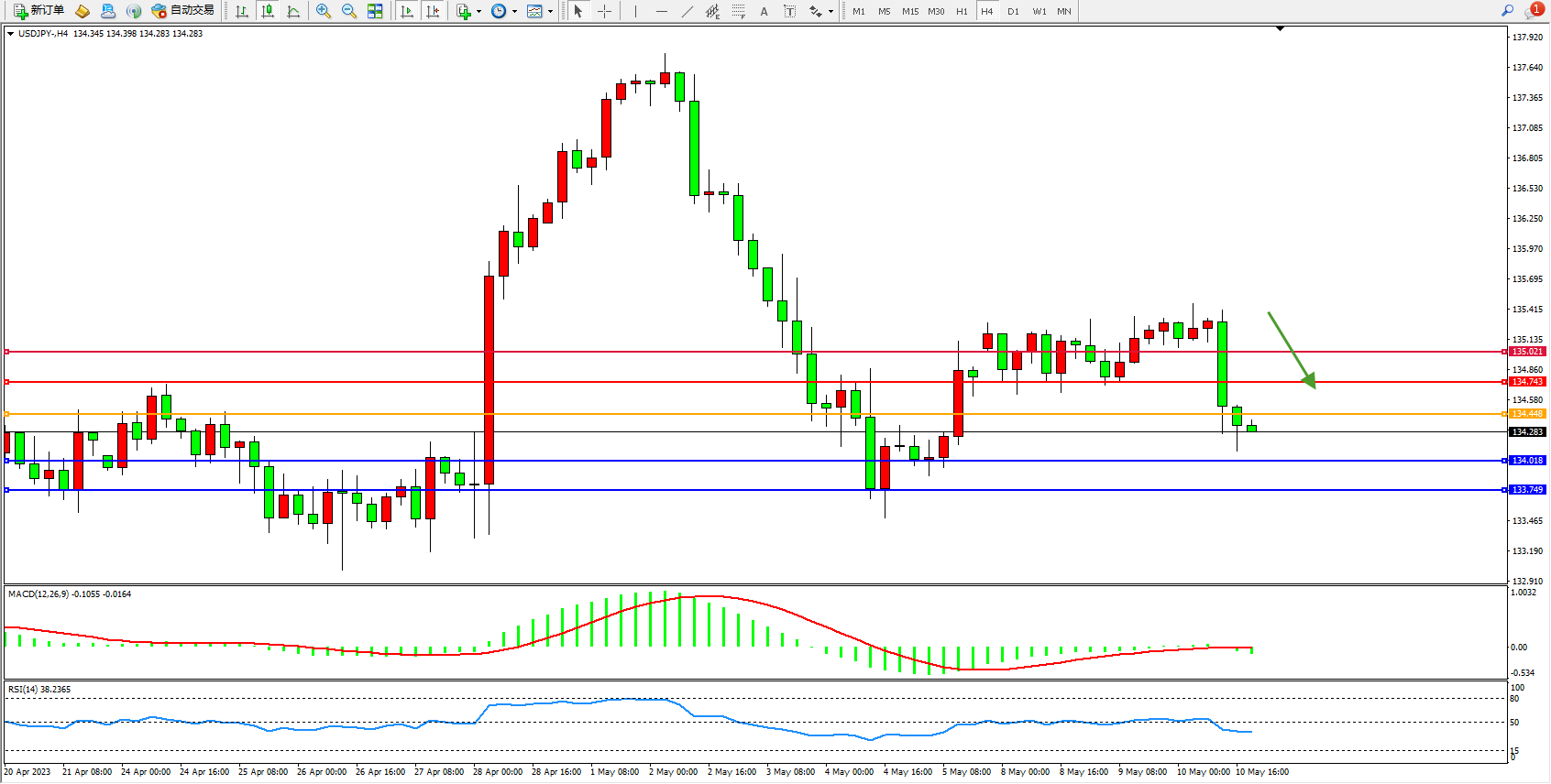 交易策略:134.448下方看跌,目标134.018 133.749