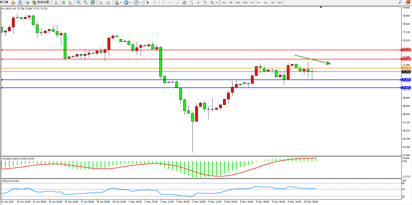 原油USOil——4小时K线图显示: