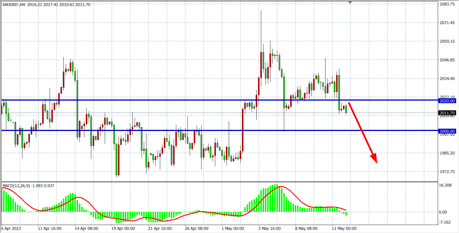 现货黄金XAUUSD 四小时图