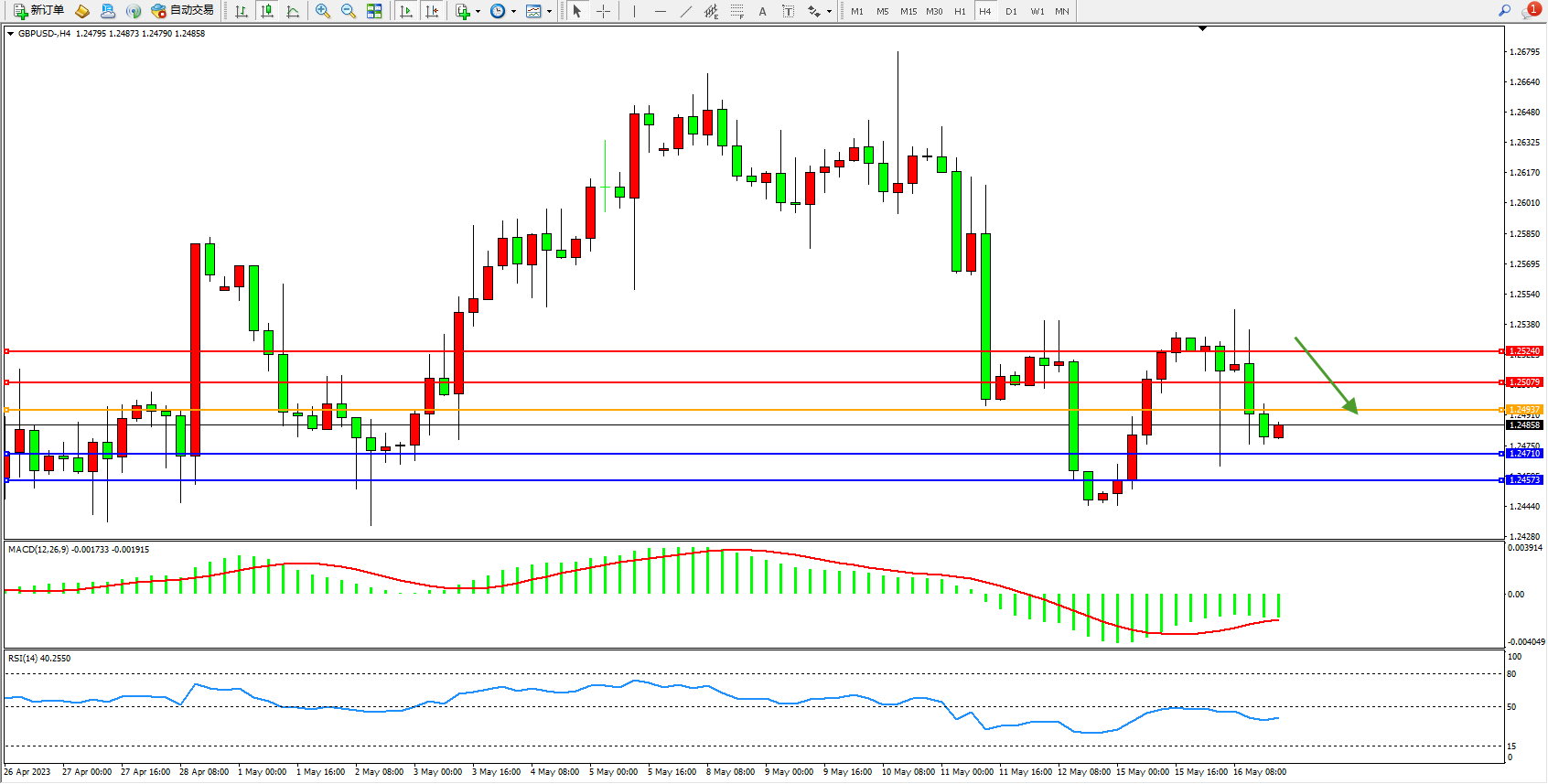 英镑美元GBPUSD ——4小时K线图显示:
