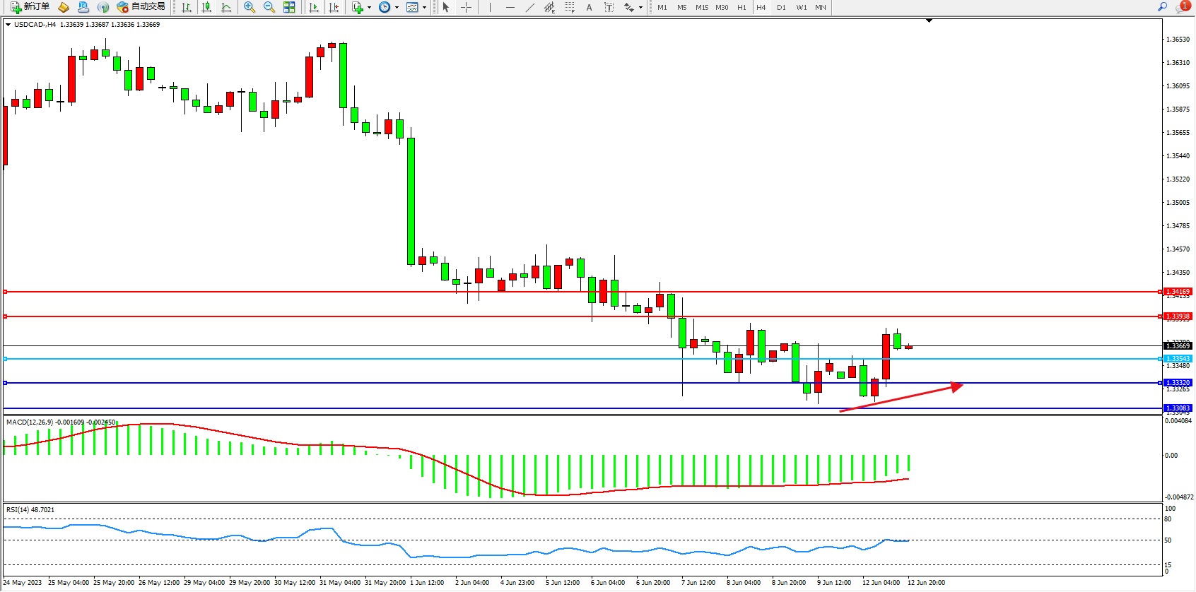 美元兑加元维持1.33669附近震荡,加拿大央行决定6月份进一步收紧货币政策,其理由是,通胀居高不下,经济增长强于预期,劳动力市场吃紧。