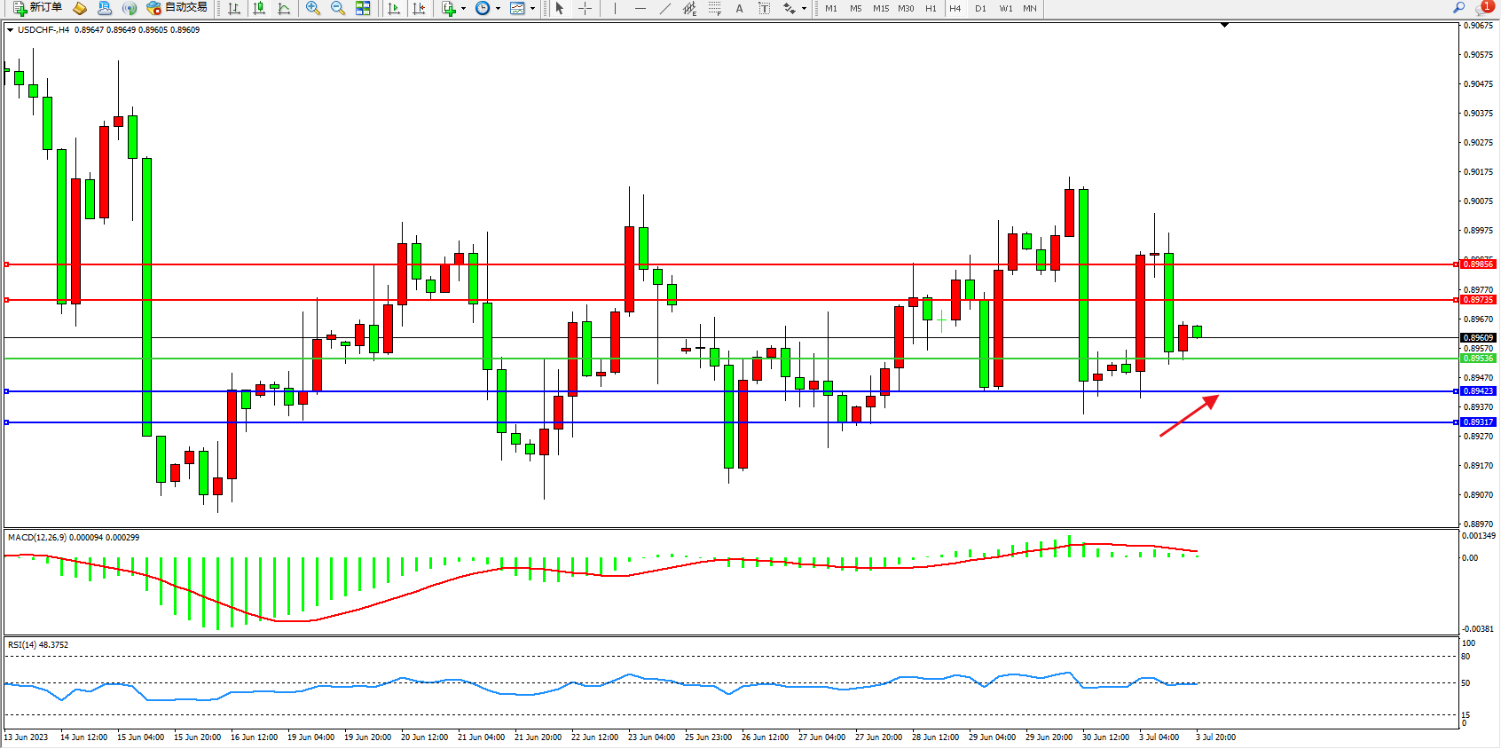 交易策略:0.89536上方看涨,目标0.89423 0.89317