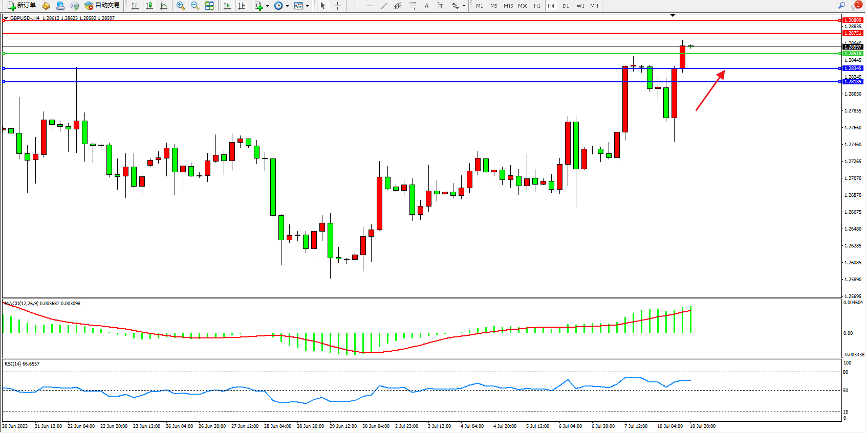 交易策略:1.28518上方看涨,目标1.28751  1.28899