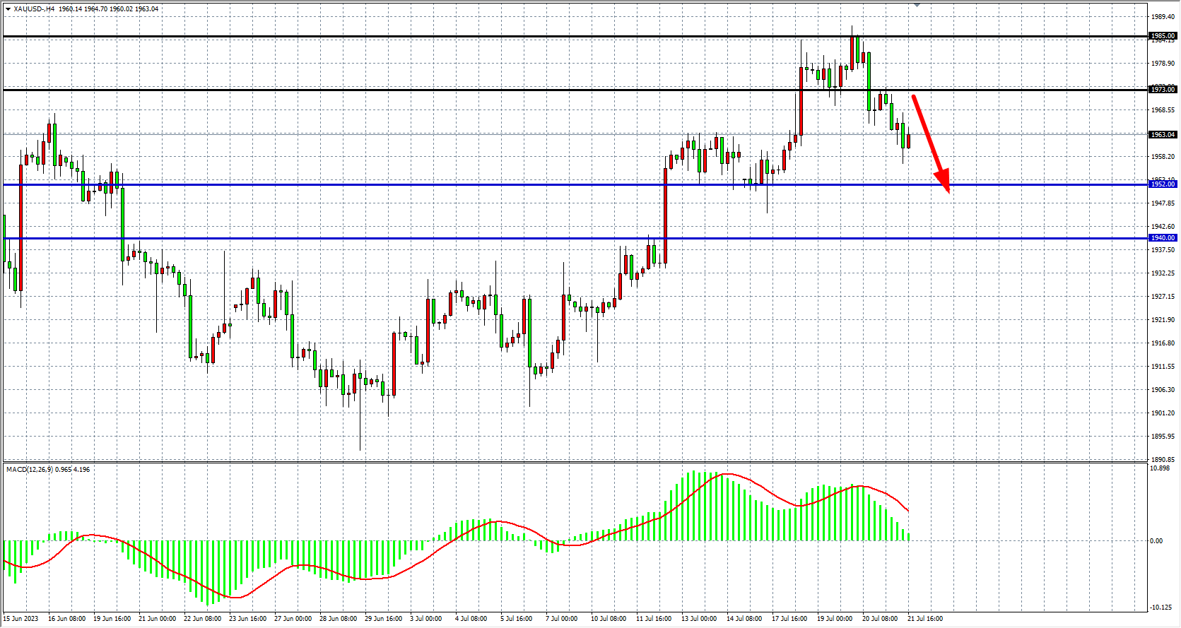 周五(7月21日)有消息称日本央行下周倾向于维持收益率控制不变,日元短线暴跌,美元指数时隔两周重新上涨,限制了金价升幅,现货黄金最终收跌0.31%。展望后市,美联储在下周货币政策会议上近乎铁定升息25个基点,需重点关注鲍威尔会后发言,研判美联储将在多长时间内保持利率高位运行。