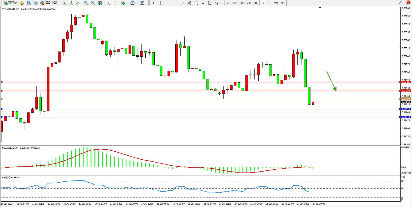 阻力位:0.67300 0.67486