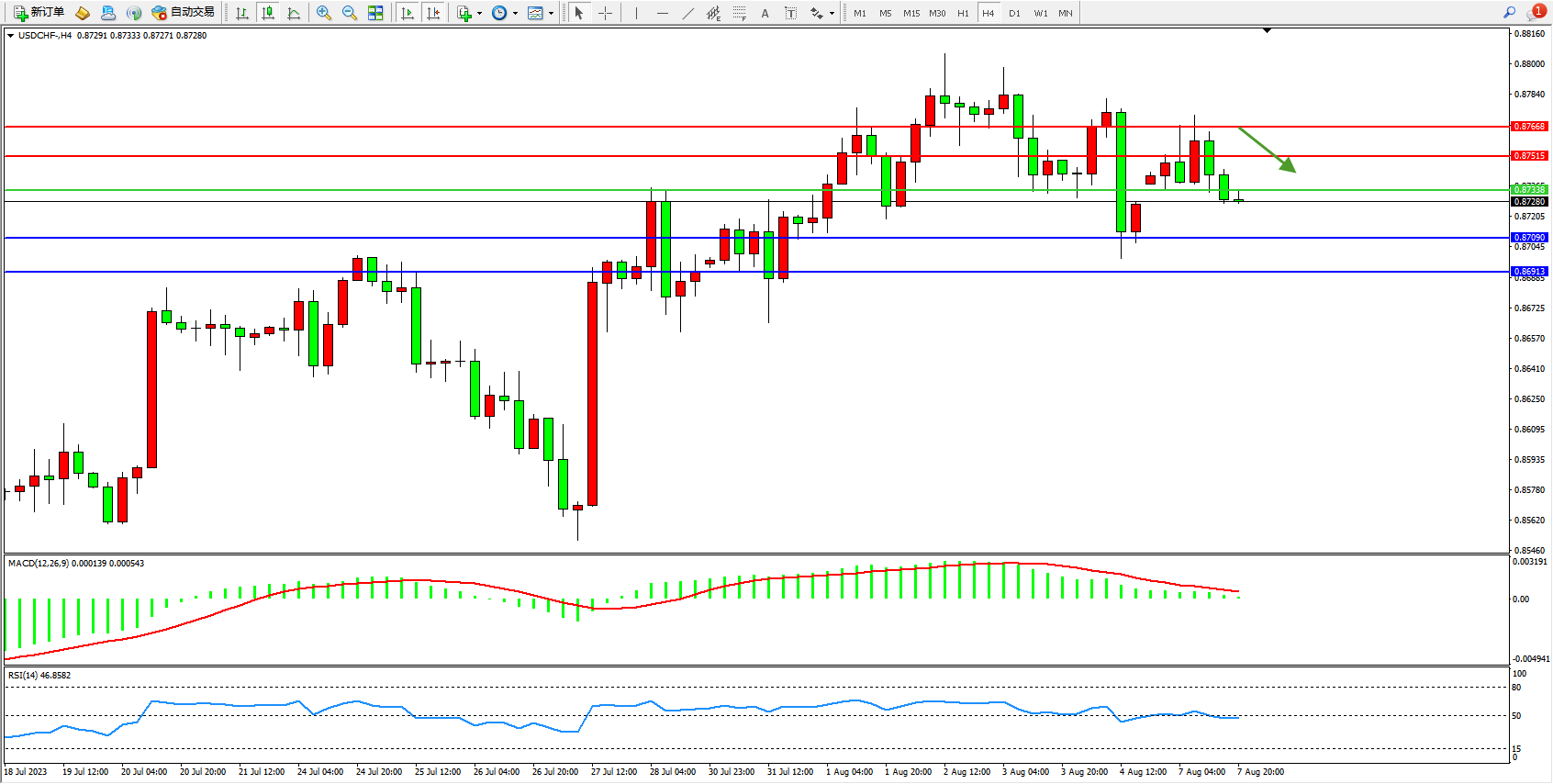 交易策略:0.87338下方看跌,目标0.87090  0.86913