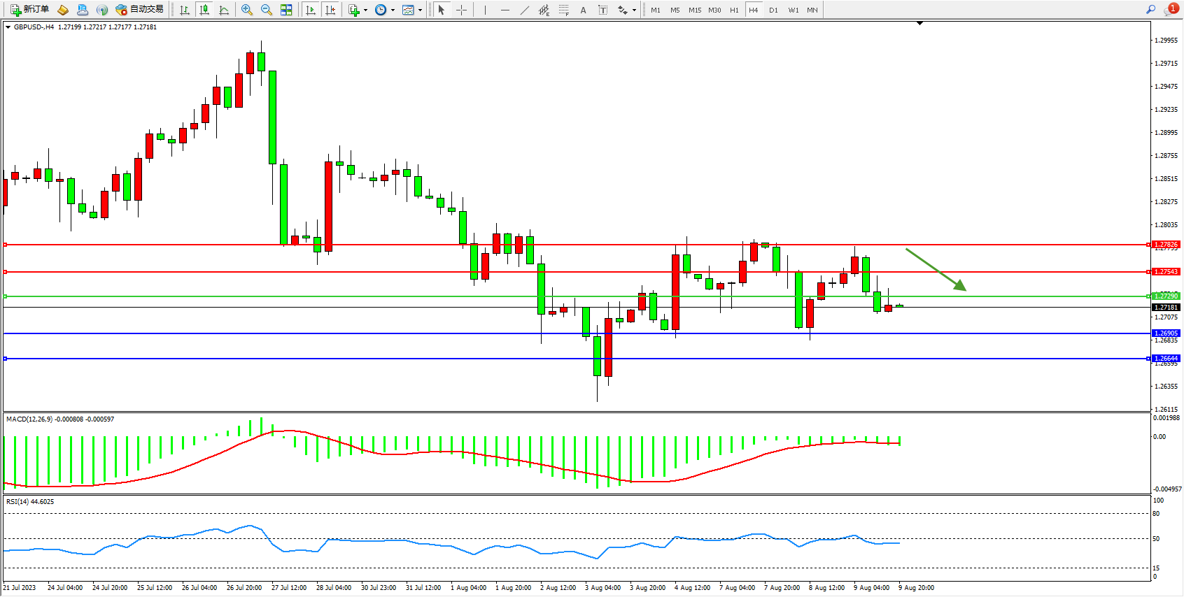 交易策略:1.27290下方看跌,目标1.26905  1.26644