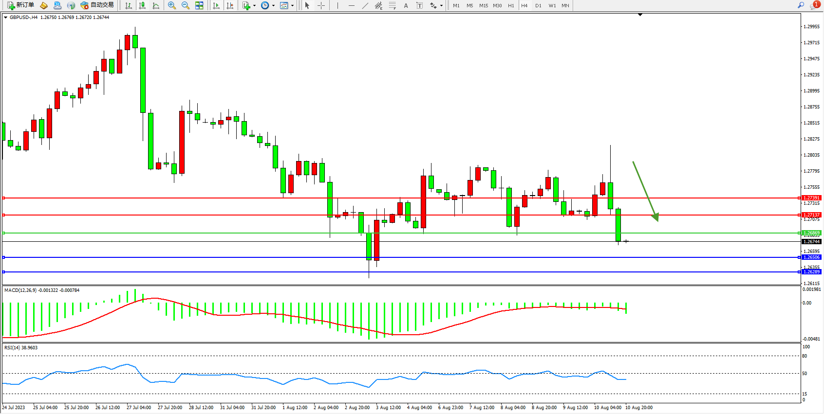 英镑美元GBPUSD ——4小时K线图显示: