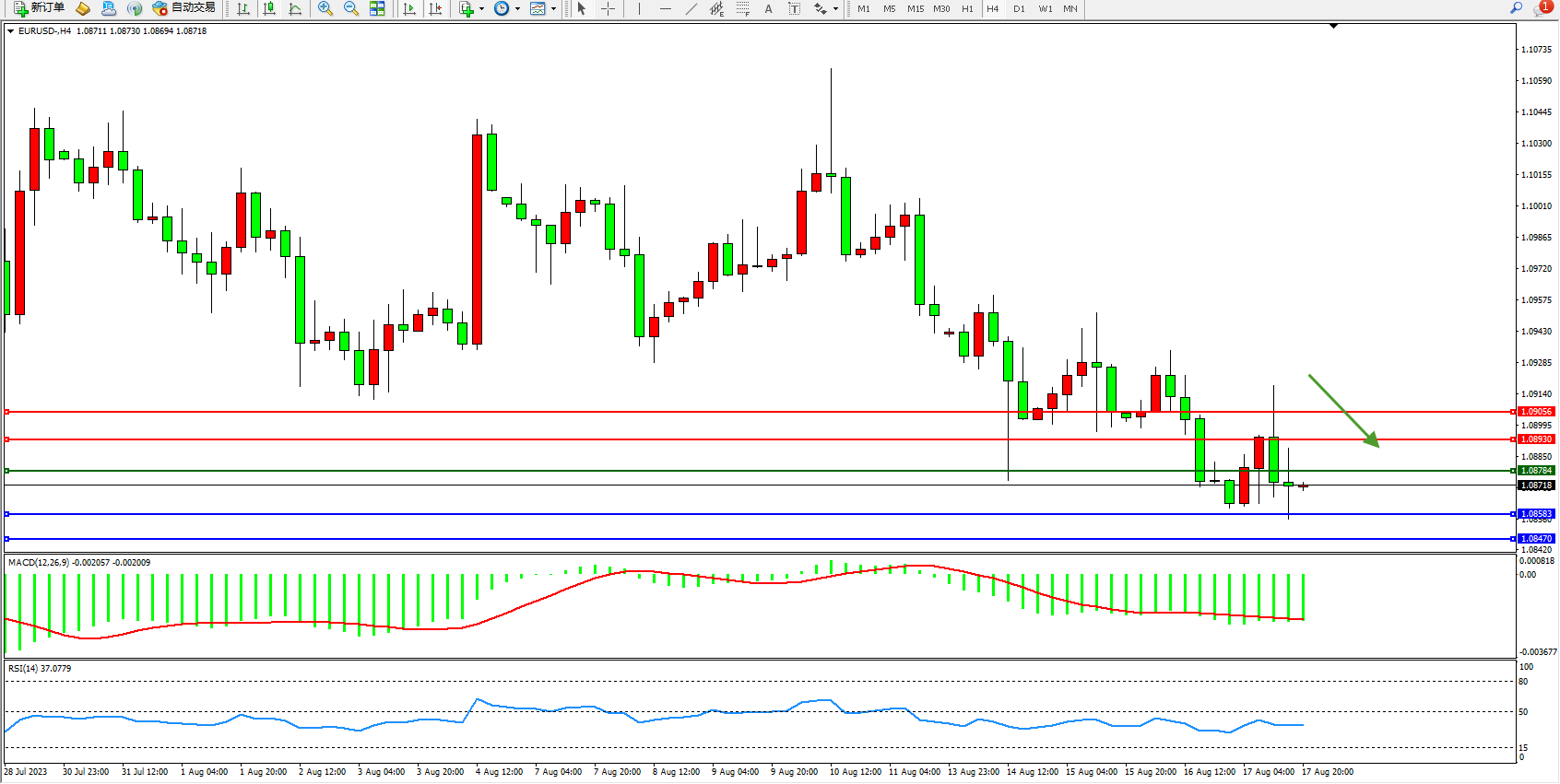 交易策略:1.08784下方看跌,目标1.08583 1.08470