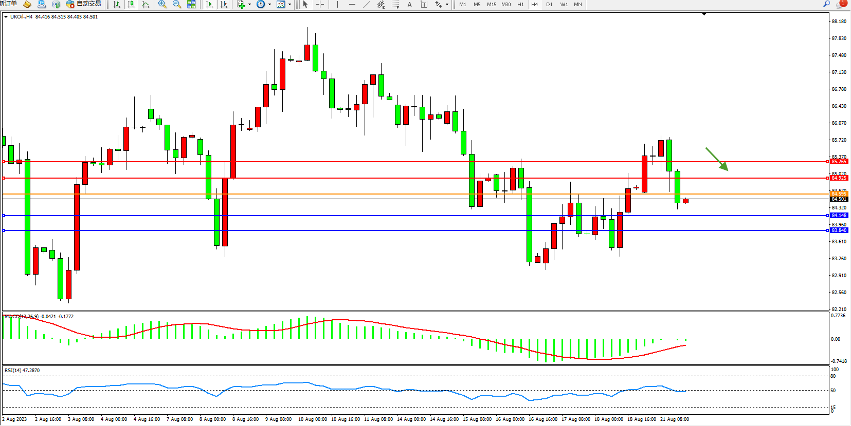 交易策略:84.595下方看跌,目标84.148 83.840