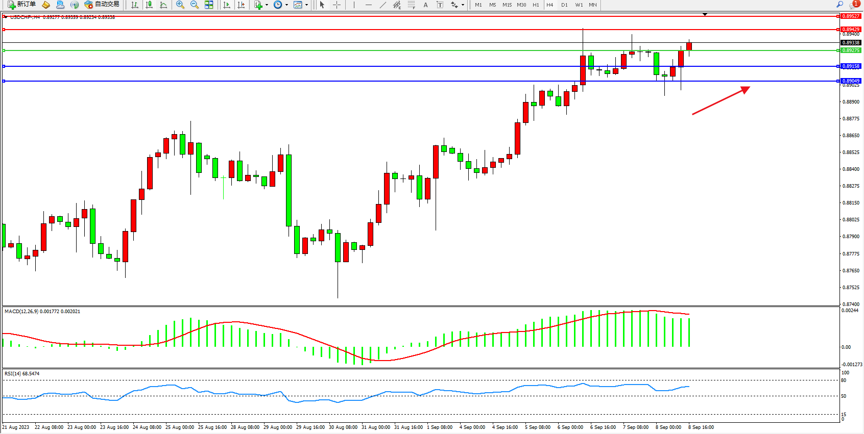 交易策略:0.89275上方看涨,目标0.89429 0.89527