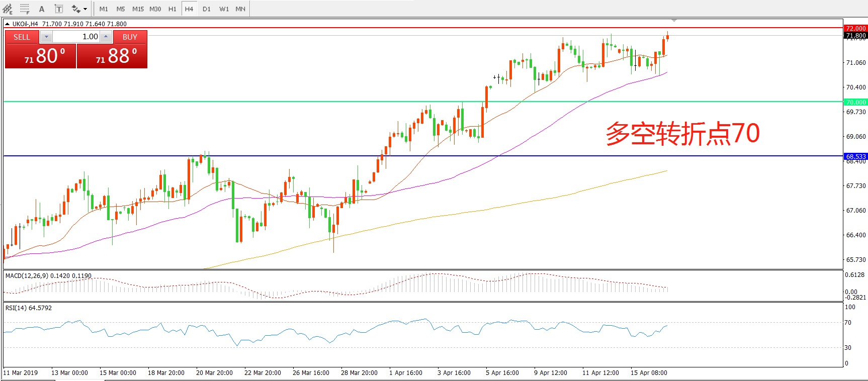 多空转折点:70.00