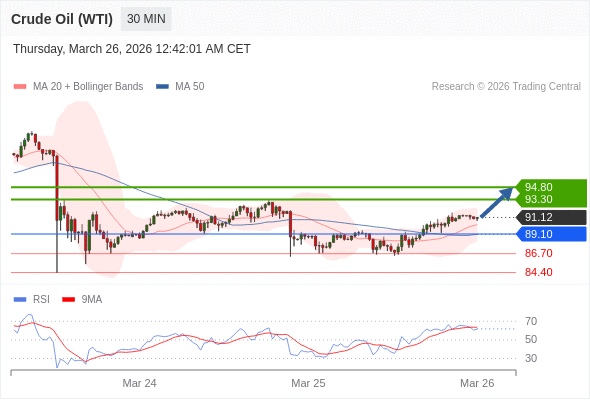 在 89.10 之上,看涨,目标价位为 93.30 ,然后为 94.80 。
