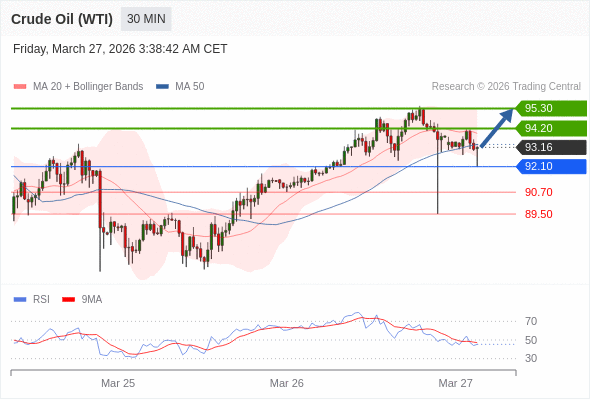 在 92.10 之上,看涨,目标价位为 94.20 ,然后为 95.30 。