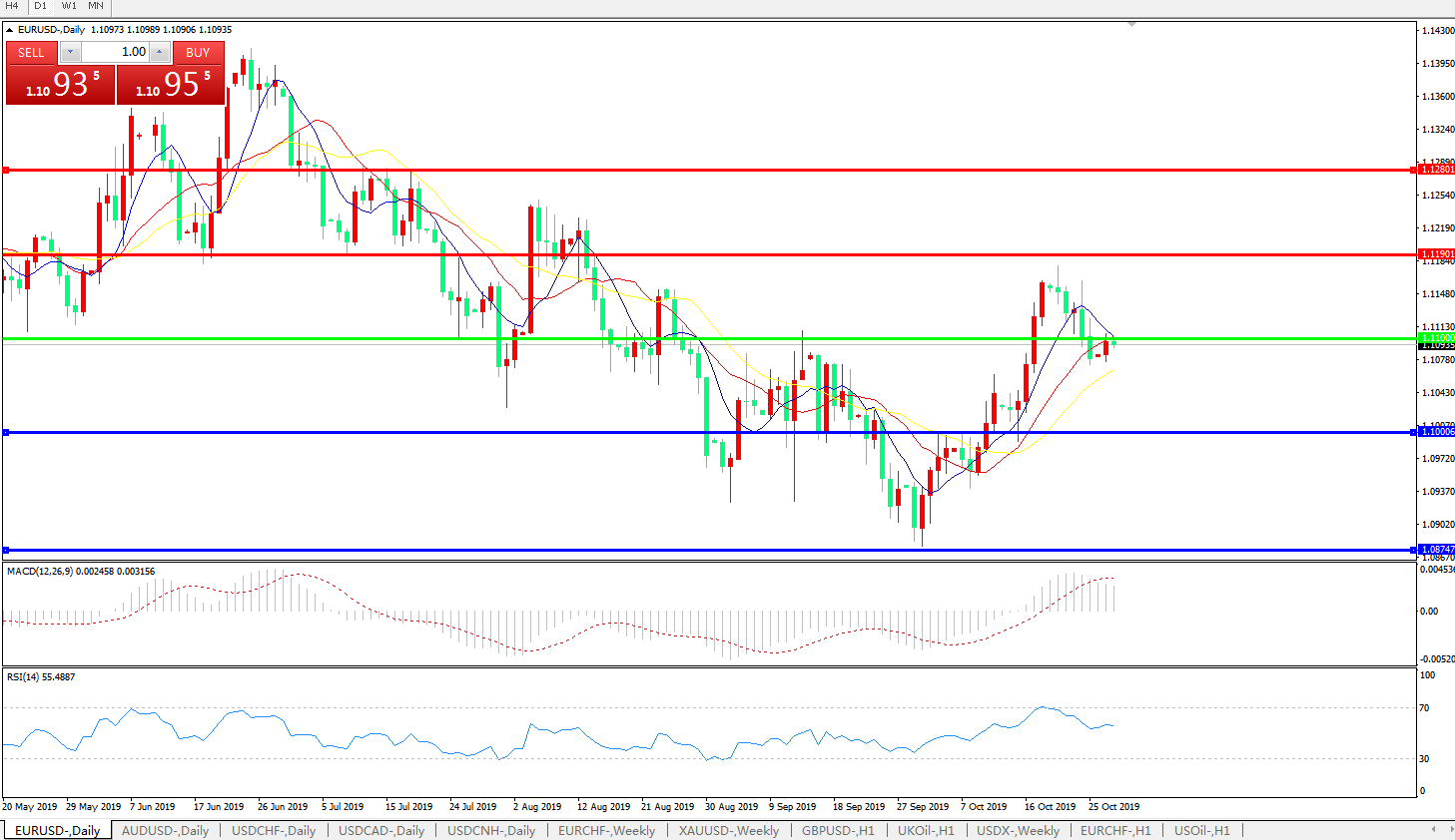 英镑兑美元汇价在周一欧市盘初拉升走高,因欧盟各方已经就允许英国延期脱欧至2020年1月31日达成基本共识,这将彻底消灭在本周四(10月31日)发生“硬脱欧”的可能性,因此投资者情绪终于重新好转; 此前,在上周后半段,受英国延期脱欧及提前大选不确定性影响,英镑汇价曾在创下5个月高位后持续回落,因市场顾虑重新萌生。但眼下,再度延期脱欧似乎大局已定,而英国首相约翰逊也已服软,表示愿意以在12月重新大选为交换筹码,同意在10月31日暂不立即脱欧; 这使得投资者在欧盟官员点头后,开始关注日内英国方面就提前大选进行的表决,而无论如何,短期内英国已经不会无协议脱欧,并且市场押注该国在大选后有望产生一个更加有力的新政府,来为进一步脱欧谈判铺平道路。相关预期在推动英镑反弹至1.2850附近区间的同时,也带动欧元上行重新逼近1.11关口。