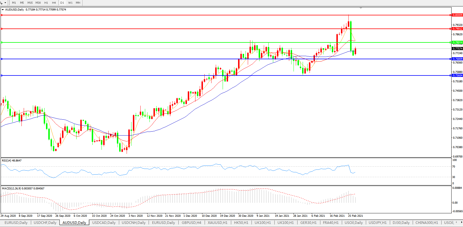 备选策略:0.7800上方看涨,目标0.7900、0.8000
