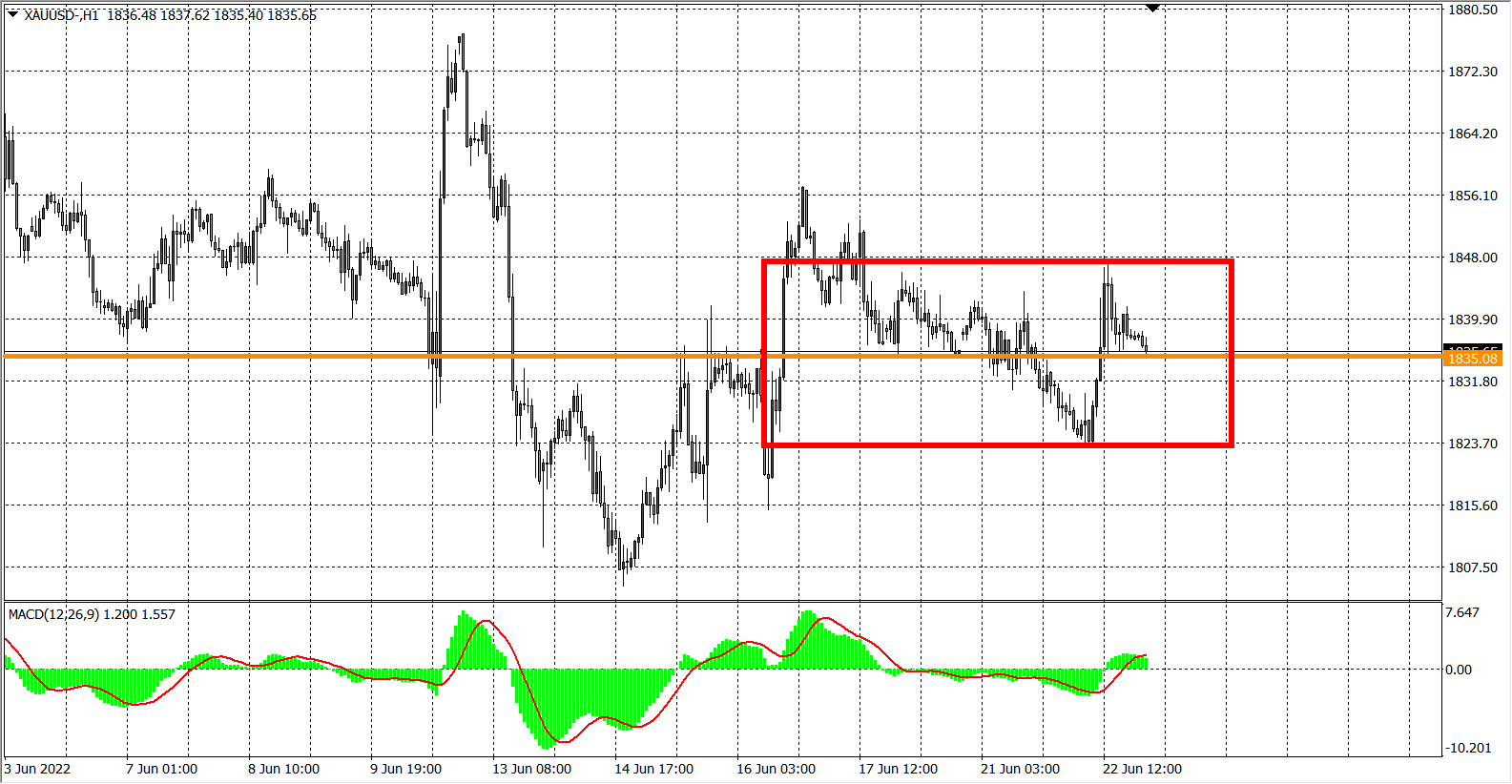 现货黄金XAUUSD 1小时图