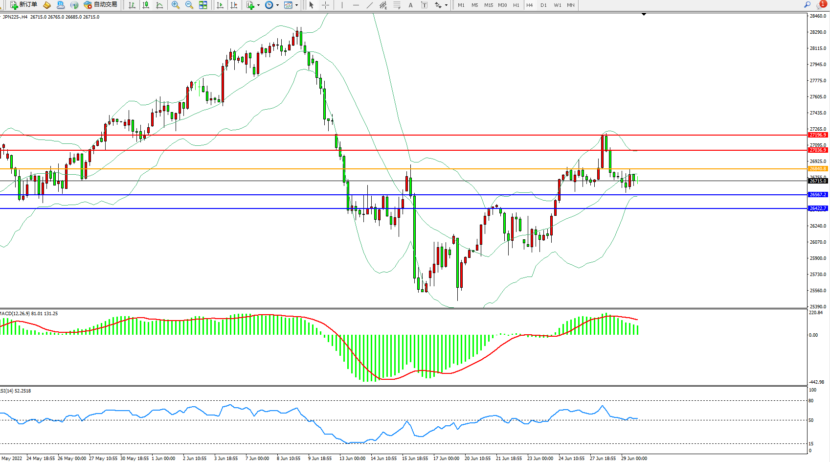 日经指数JPN225——4小时K线图显示: