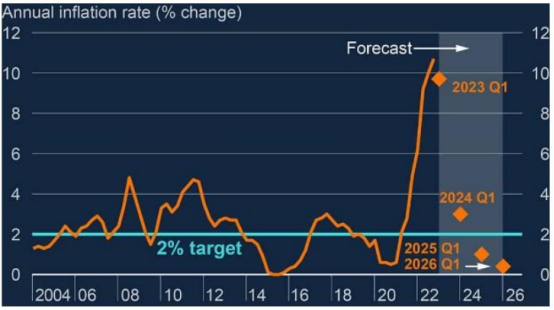 今年英国经济衰退是大概率事件,英国预算责任办公室(OBR)此前也预测英国经济今年下滑1.4%。2023年,多重经济逆风摆在英国面前。包括地缘政治风险、高通胀压力、高利率的抑制,以及多行业罢工带来的负面影响。