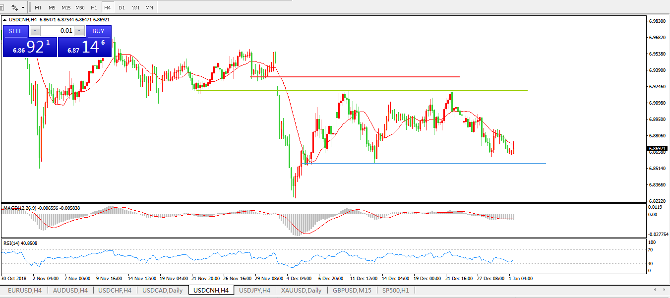 备选策略: 在6.9200之上,看涨,目标价位为6.9300,然后为6.9557。